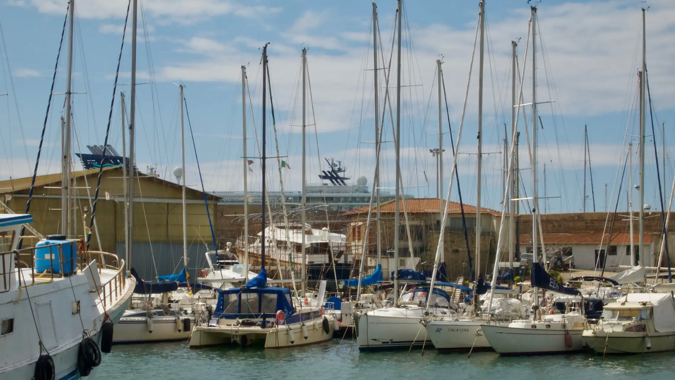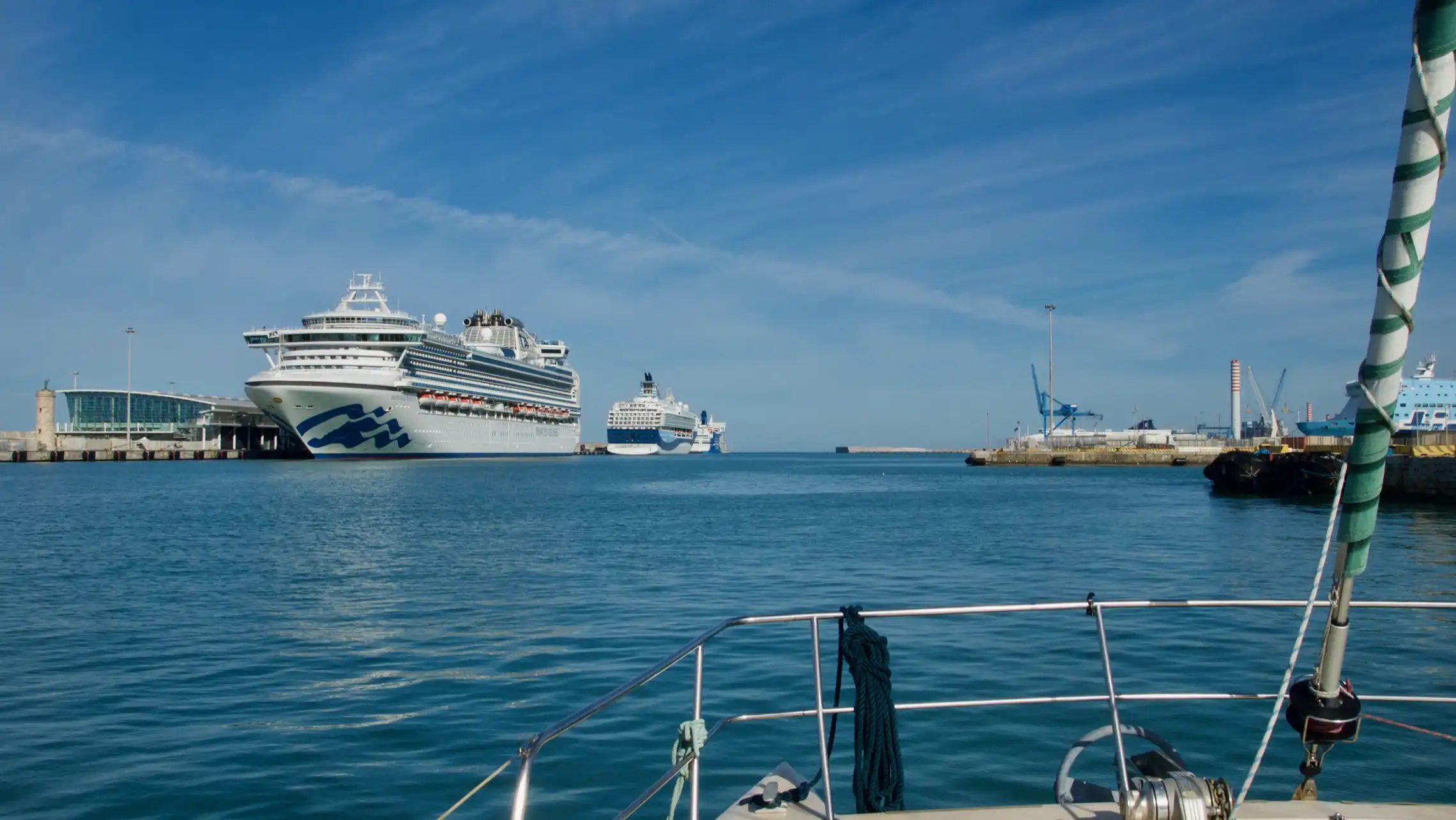 Dagen efter sejlede vi 32 sømil til Civitavecchia. Vinden var sløj så motoren fik lov at arbejde noget mere end dagen før. Også Civitavecchia er en gammel kending. Vi ville helst have undgået den, men der er ikke så mange alternativer her på kysten og da vejret tegner ret dårligt, så har vi valgt at søge havn. Sidst vi var i byen fik vi et noget kedeligt indtryk af den på en mørk og kedelig efterårsaften. I forårssolen tager den sig noget bedre ud. Havnen i Civitavecchia er gigantisk. Det er en af Europas største krydstogthavne og der er også færger til alverdens steder og slæbebåde og krigsskibe. Fra man sejler ind gennem indsejlingen til man når bunden, hvor lystbådene ligger, er der 3 km. Dét er en stor havn.